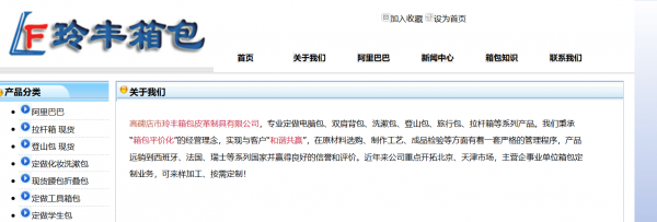 高碑店市玲豐箱包皮革制具有限公司選用我司企業的網站設計優化產品,其seo關鍵詞為箱包,定制有針對性的SEO優化執行方案,根據盈利模式和核心產品選擇更適合的精準關鍵詞。配備專業SEO優化團隊,項目前期做好市場、企業定位、目標用戶、盈利模式分析 高碑店市玲豐箱包皮革制具有限公司成立于2005年,是經天津市市場監督管理局審核的有資質的公司。公司地址:天津市津南區咸水沽鎮枕流公寓4-1-1204,