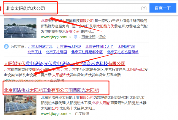 北京恒潔偉業太陽能工業有限公司選用我司企業太陽能光伏行業的網站優化產品,其SEO關鍵詞有太陽能光伏。無論你關鍵詞是在20名內、30名內、還是50名內。我們都可以在最短時間優化至搜索引擎的首頁。提供后臺管理,排名查詢、關鍵詞管理、財務扣費一目了然,一鍵操作。北京恒潔偉業太陽能工業有限公司成立于2003年,是經北京市市場監督管理局審核的有資質的公司,其統一社會信用代碼:91110115748840974Y。公司地址:北京市北京經濟技術開發區榮華中路8號院13號樓17層2003。