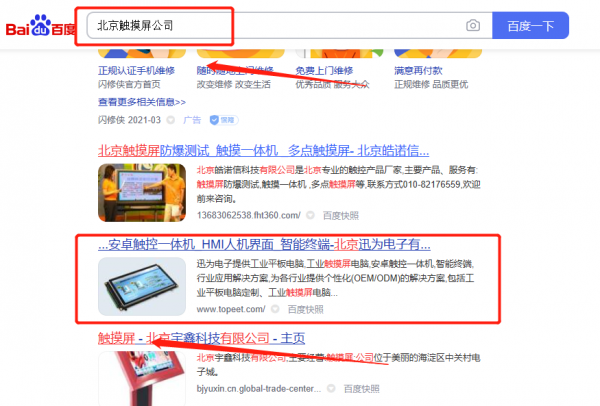 我們公司與北京*為電子有限公司合作中,對這個公司所經(jīng)營的觸摸屏這個行業(yè)提供了百度排名,與該公司的合作,更多的客戶讓我們公司為其提供百度快照排名,通過每一次合作,我們公司不斷完善自己,同時希望合作伙伴在經(jīng)營的路上越來越好。