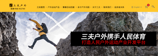 三*戶外創立于1997年的三夫戶外發展至今已有20多年歷史。創立之初的三夫僅僅是北京大學東門外一處30平米的小店,多年來秉承"誠信經營,保證售后"的經營理念,以及"運動、快樂、夢想"的宗旨,持續健康快速發展。目前在北京、上海、南京、杭州、成都、深圳、沈陽、長春、青島、石家莊、蘇州、無錫等核心城市擁有30余家國際一流水準的專營店,營業面積超過14000余平米,代理經營國內外300多個專業戶外運動品牌的產品,充分滿足戶外愛好者對野營、登山、攀巖、跑步、滑雪、自行車、自駕車、休閑旅行等活動的一站式購物需求。