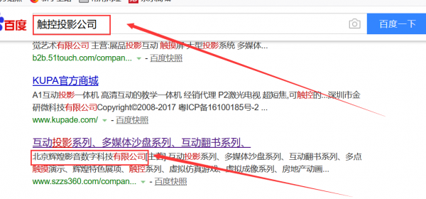 我們公司與北京輝煌影音數字科技公司合作中,對這個公司所經營的觸控投影這個行業的SEO推廣積累了豐富的經驗;同時在該行業的SEO推廣等多元化的領域中也有很多的成功的案例;但愿通過我們的合作,能夠幫助到合作伙伴在同行業中遙遙領先。