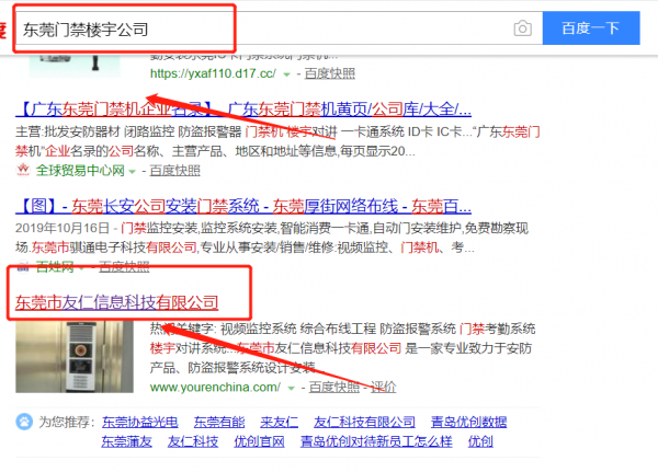 我們公司與東莞市友仁信息科技有限公司合作中,對這個公司所經營的門禁樓宇這個行業提供了百度快照排名,與該公司的合作,更多的客戶讓我們公司為其提供百度快照排名,通過每一次合作,我們公司不斷完善自己,同時希望合作伙伴在經營的路上越來越好。