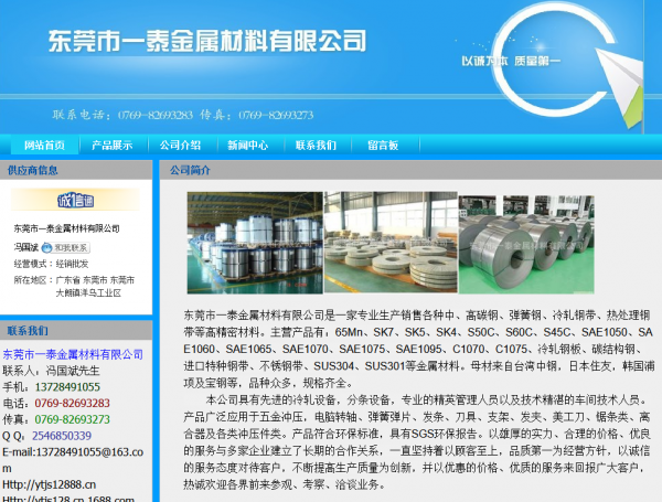 東莞市一*金屬材料有限公司選用我司企業(yè)的網(wǎng)站設(shè)計(jì)優(yōu)化產(chǎn)品,其seo關(guān)鍵詞為高碳鋼、彈簧鋼、冷軋鋼帶、熱處理鋼帶等高精密材料 定制有針對(duì)性的SEO優(yōu)化執(zhí)行方案,根據(jù)盈利模式和核心產(chǎn)品選擇更適合的精準(zhǔn)關(guān)鍵詞。配備專業(yè)SEO優(yōu)化團(tuán)隊(duì),項(xiàng)目前期做好市場(chǎng)、企業(yè)定位、目標(biāo)用戶、盈利模式分析,     東莞市一*金屬材料有限公司成立于2016年,是經(jīng)東莞市市場(chǎng)監(jiān)督管理局審核的有資質(zhì)的公司,其統(tǒng)一社會(huì)信用代碼:91441900**065101101P。公司地址:東莞市大朗鎮(zhèn)洋烏村校椅圍五路52號(hào)