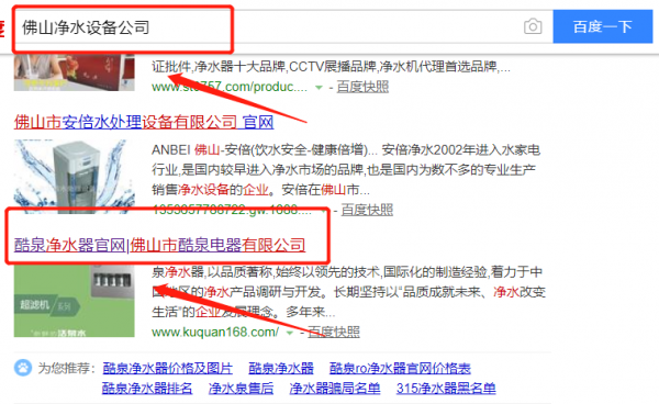 我們公司與佛山市酷泉電器有限公司合作中,對這個公司所經營的凈水設備這個行業提供了搜索引擎優化推廣,與該公司的合作,更多的客戶讓我們公司為其提供搜索引擎優化推廣,通過每一次合作,我們公司不斷完善自己,同時希望合作伙伴在經營的路上越來越好。