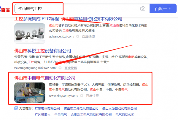 佛山市*自電氣自動(dòng)化有限公司SEO優(yōu)化排名效果展示