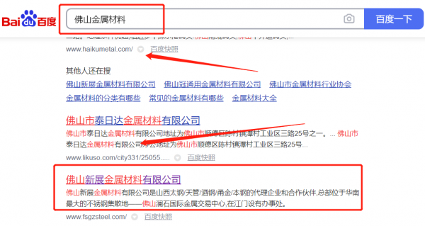 我們公司與佛山*展金屬材料有限公司合作中,對這個公司所經營的金屬材料這個行業提供了網站SEO優化,與該公司的合作,更多的客戶讓我們公司為其提供百度快照排名,通過每一次合作,我們公司不斷完善自己,同時希望合作伙伴在經營的路上越來越好。