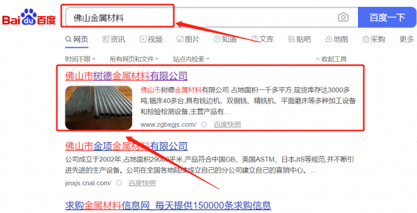 佛山市樹*金屬材料有限公司網站SEO優化最快上詞效果展示