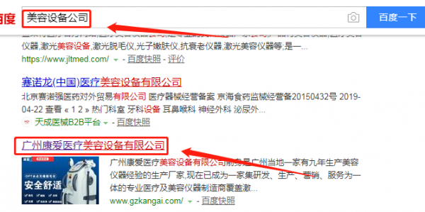我們公司與廣州康愛醫(yī)療美容設(shè)備有限公司合作中,對這個(gè)公司所經(jīng)營的醫(yī)療設(shè)備這個(gè)行業(yè)提供了SEO推廣,同時(shí)讓我們積累到更多的經(jīng)驗(yàn),與廣州康愛醫(yī)療美容設(shè)備有限公司建立了友好的合作伙伴的關(guān)系,也提高了海洋網(wǎng)絡(luò)在同行業(yè)的知名度,提高了廣州康愛醫(yī)療美容設(shè)備有限公司在同行業(yè)的知名度,發(fā)展越來越好。