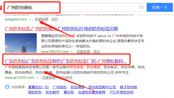 廣州傾松數(shù)碼科技有限公司選用我司企業(yè)防偽商標行業(yè)的網(wǎng)站優(yōu)化產(chǎn)品,其SEO關(guān)鍵詞有防偽商標。配備專業(yè)SEO優(yōu)化團隊,項目前期做好市場、企業(yè)定位、目標用戶、盈利模式的分析和關(guān)鍵詞的篩選??梢酝瑫r在百度、360等知名搜索引擎中享受排名靠前的權(quán)力,搶占互聯(lián)網(wǎng)市場。廣州傾松數(shù)碼科技有限公司成立于2007年,是經(jīng)廣州市市場監(jiān)督管理局審核的有資質(zhì)的公司,其統(tǒng)一社會信用代碼:914401017973847764。公司地址:廣東省廣州市天河區(qū)高新技術(shù)開發(fā)區(qū)高普路136號華天時代103A1單元。