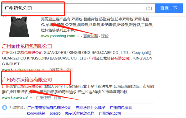 廣州殼羅沃箱包有限公司選用我司企業箱包的網站優化產品,其SEO關鍵詞有箱包。搶占百度、360搜索、搜狗等搜索引擎首頁自然排名(PC端 + 手機端),高客流量導入,SEO推廣效果更突出。廣州殼羅沃箱包有限公司成立于2016年,是經廣州市市場監督管理局審核的有資質的公司,其統一社會信用代碼:91440114MA59BJLA1W。公司地址:廣東省廣州市花都區獅嶺鎮振興北路23號廠房五(可作廠房使用)。