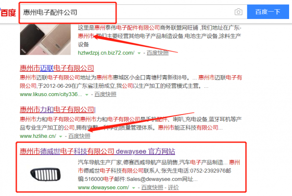 我們公司與惠州市德威世電子科技有限公司合作中,對(duì)這個(gè)公司所經(jīng)營(yíng)的電子配件這個(gè)行業(yè)提供了百度快照排名,與該公司的合作,更多的客戶(hù)讓我們公司為其提供搜索引擎優(yōu)化推廣,通過(guò)每一次合作,我們公司不斷完善自己,同時(shí)希望合作伙伴在經(jīng)營(yíng)的路上越來(lái)越好。