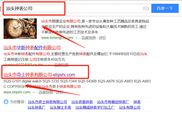 汕頭市奇士鐘表有限公司與我司簽下百度霸屏協議
