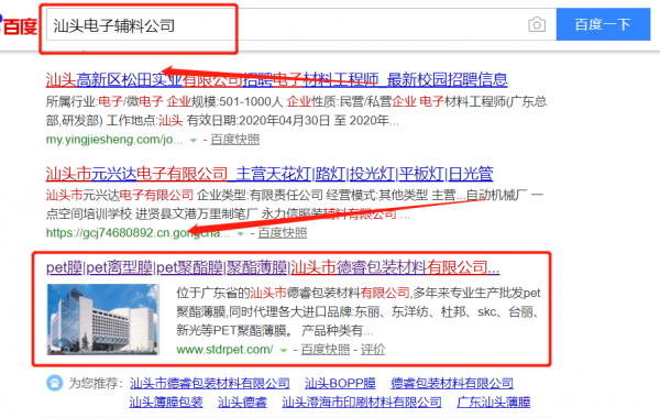汕頭市德睿包裝材料有限公司選用我司企業電子輔料行業的網站優化產品,其SEO關鍵詞有電子輔料。覆蓋國內幾大主流搜搜引擎,占領電腦端、手機端,24小時快速獲取關鍵詞排名,搶奪流量。汕頭市德睿包裝材料有限公司成立于2014年,是經汕頭市市場監督管理局審核的有資質的公司,其統一社會信用代碼:91440500090176957D。公司地址:廣東省汕頭市金平區溝南東發工業區二片3號。
