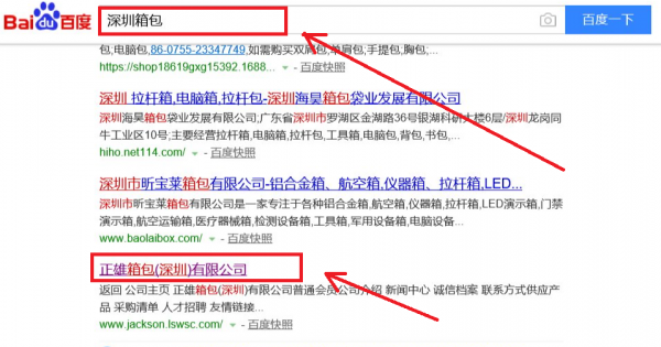 正雄箱包(深圳)有限公司選用我司企業箱包行業的網站優化產品,其SEO關鍵詞有旅行箱、拉桿箱、化妝箱。按天計費,最快7天上詞,不到首頁不扣費。關鍵詞質量保證,白帽SEO符合百度算法,360、搜狗、移動端等排名效果免費贈送。正雄箱包(深圳)有限公司成立于2009年,是經深圳市市場監督管理局審核的有資質的公司,其統一社會信用代碼:914403006894028693。公司地址:深圳市福田區車公廟深南大道南江西世紀豪庭(江西大廈)13D