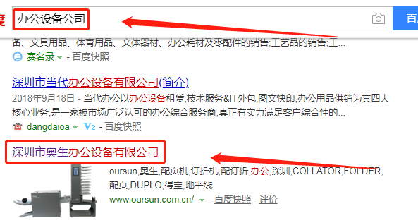 深圳市奧生辦公設(shè)備有限公司和我公司簽訂百度霸屏項(xiàng)目