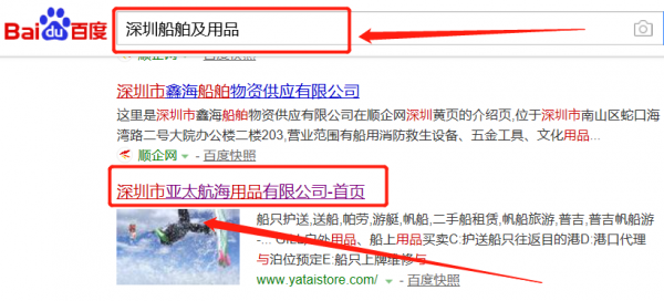 深圳市亞太航海用品有限公司公司與本司簽約百度快照排名協(xié)議
