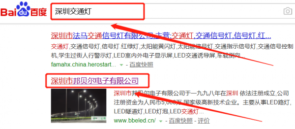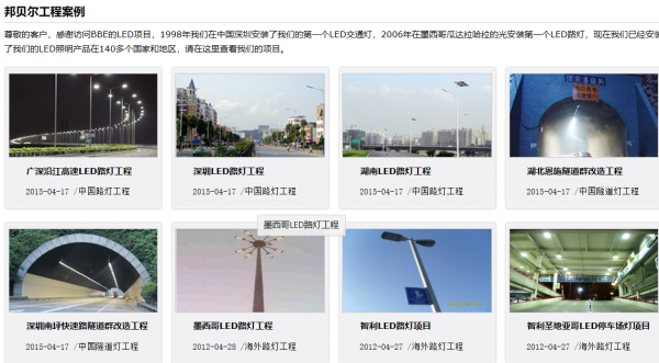 我們公司與深圳市邦貝爾電子有限公司合作中,對這個公司所經營的交通燈這個行業提供了搜索引擎優化推廣,與該公司的合作,更多的客戶讓我們公司為其提供搜索引擎優化推廣,通過每一次合作,我們公司不斷完善自己,同時希望合作伙伴在經營的路上越來越好。