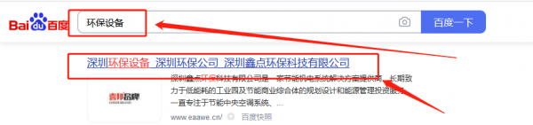 深圳鑫*環保科技有限公司百度快照排名案例欣賞