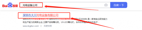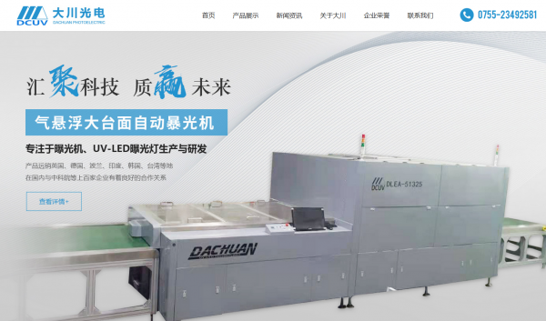 深圳市大*光電設備有限公司成立于2008年,是一家有獨立研發能力和生產能力的高新企業,主要產品有曝光機、UV-LED曝光燈。合作伙伴遍及國內外電子生產行業,產品遠銷英國、德國、波蘭、印度、韓國、臺灣等地。在國內與中科院等上百家企業有著良好的合作關系公司新研發的產品有:UV-LED輻射式曝光燈、UV-LED聚焦式固化燈、UV-LED準直式曝光燈、UV-LED平行曝光燈、全自動曝光機等產品。