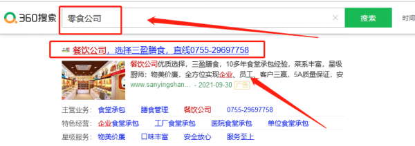 深圳市三*膳食管理有限公司關(guān)鍵詞排名案例欣賞