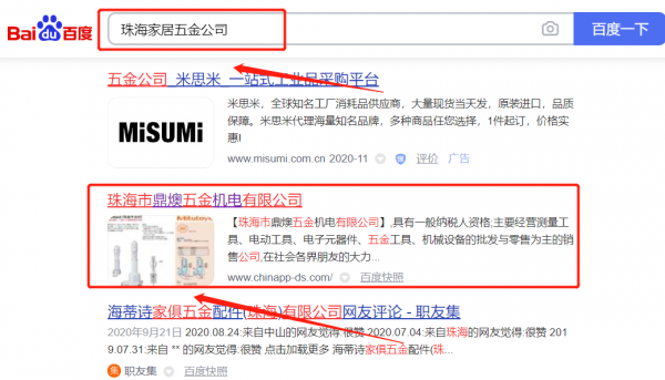 珠海市鼎*五金機電有限公司選用我司企業(yè)家居五金行業(yè)的網(wǎng)站優(yōu)化產(chǎn)品,其SEO關鍵詞有家居五金。覆蓋國內(nèi)幾大主流搜搜引擎,占領電腦端、手機端,24小時快速獲取關鍵詞排名,搶奪流量。珠海市鼎*五金機電有限公司成立于2004年,是經(jīng)珠海市市場監(jiān)督管理局審核的有資質的公司,其統(tǒng)一社會信用代碼:9144040009**33563E。公司地址:廣東省珠海市金灣區(qū)紅旗鎮(zhèn)華興圍萬春園第二棟4#商鋪。