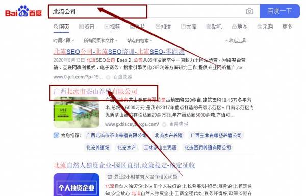 廣西北流市*山養殖有限公司關鍵詞排名最快上詞效果展示