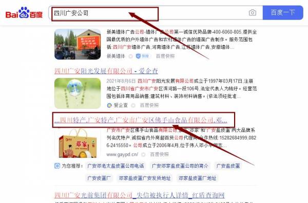 廣安市廣安區佛*山食品有限公司百度排名最快上詞效果展示