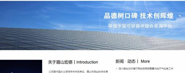 眉山宏*企業環境技術有限公司選用我司企業環境保護行業的網站優化產品,其SEO關鍵詞有眉山環評,環評公司,眉山環評公司,四川眉山環評公司,眉山節能評估,宏德企業節能環保,眉山宏*企業環境技術有限公司。其特點是用很合適的展示方式、展示效果、站點框架,把客戶及其用戶很關心的問題突出表現;并以簡潔明朗的設計風格,清晰展現公司水平實力,確保一秒抓住目標用戶眼球,給用戶留下良好的第一印象。眉山宏*企業環境技術有限公司成立于2002年,是經眉山市市場監督管理局審核的有資質的公司,其統一社會信用代碼:91511400**9140588G。公司地址:眉山市東坡區裴城路裴城春天3棟718號