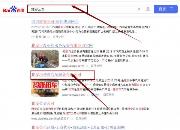 雅安瑪*雅汽車服務有限公司百度關鍵詞排名最快上詞效果展示