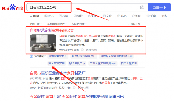 自貢好*定制家具有限公司關鍵詞推廣保證在首頁效果
