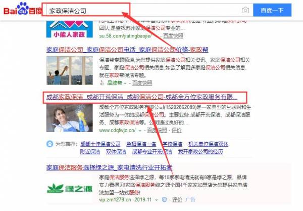 我們公司與成都全方位家政服務有限公司合作中,對這個公司所經營的家政保潔這個行業的關鍵詞搜索排名積累了豐富的經驗;同時在該行業的搜索引擎優化推廣等多元化的家政保潔領域中也有很多的成功的案例;但愿通過我們的合作,能夠幫助到合作伙伴在同行業中遙遙領先。