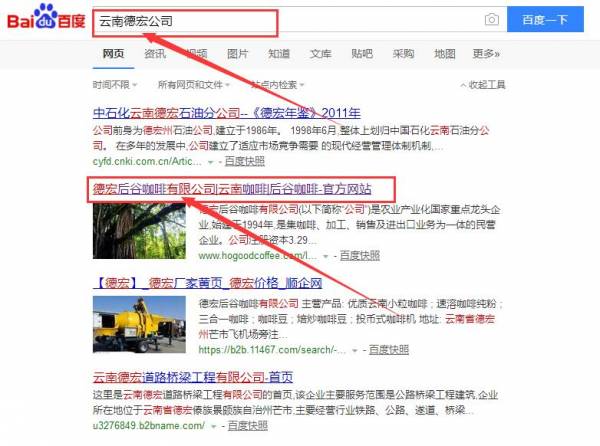 德宏后谷咖啡有限公司和我公司簽訂百度快照排名項目