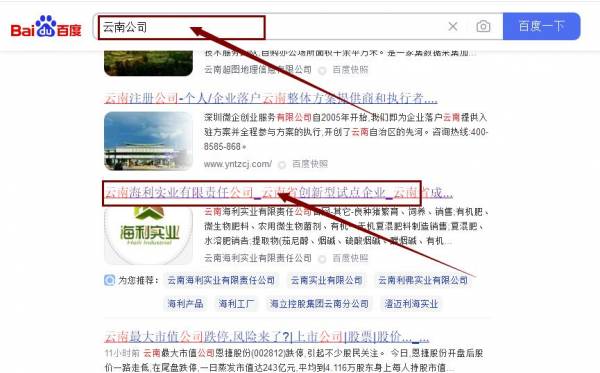 云南海*實業有限責任公司關鍵詞排名最快上詞效果展示