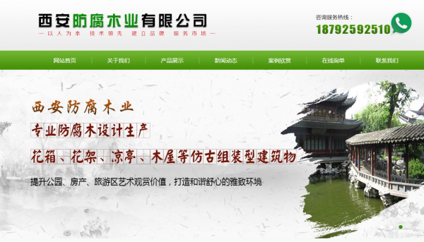 西*防腐木業有限公司選用我司企業網站設計優化產品,其seo關鍵詞為木業,從事防腐木材的生產、加工及防腐木的設計;定制有針對性的SEO優化執行方案,根據盈利模式和核心產品選擇更適合的精準關鍵詞。配備專業SEO優化團隊,項目前期做好市場、企業定位、目標用戶、盈利模式分析,西*防腐木業有限公司成立于2010年,是經西安市市場監督管理局審核的有資質的公司,其統一社會信用代碼: 91610113**556983786M。公司地址:西安市太華北路延伸段團結村鐵路口東北角。