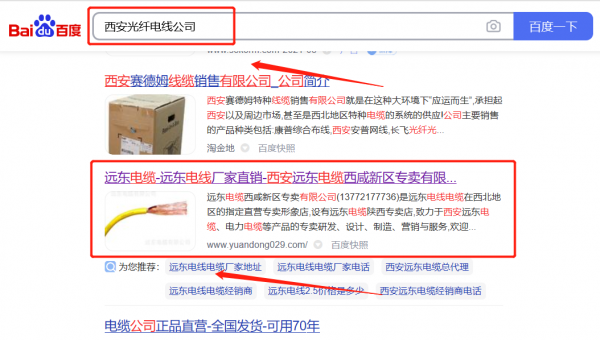 遠*電纜西咸新區專賣有限公司選用我司企業光纖電線的網站優化產品,其SEO關鍵詞有光纖電線。主要針對百度、搜狗、360等搜索引擎進行快速排名優化服務,關鍵詞排名必要條件是在搜索結果前3頁,周期15天內可優化到搜索引擎首頁。遠*電纜西咸新區專賣有限公司成立于2015年,是經西安市市場監督管理局審核的有資質的公司,其統一社會信用代碼:9161110**05578452H。公司地址:陜西省西咸新區灃東新城西咸大道東段5號6排25-26號。