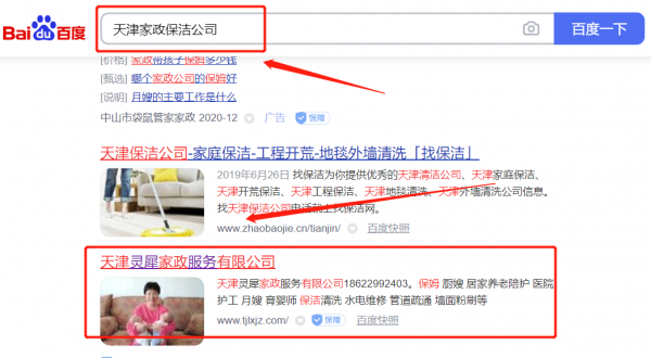 天津靈*家政服務有限公司關鍵詞搜索排名案例欣賞