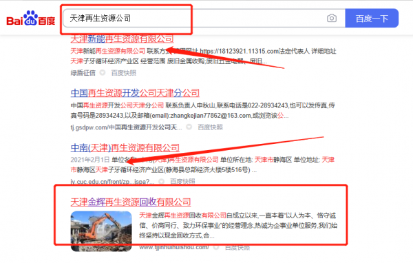 天津金*再生資源回收有限公司網站排名到首頁無排名不收費