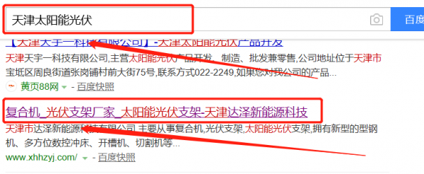 我們公司與天津市達(dá)澤新能源科技有限公司合作中,對這個公司所經(jīng)營的太陽能光伏這個行業(yè)提供了快速排名,同時讓我們積累到更多的經(jīng)驗(yàn),與天津市達(dá)澤新能源科技有限公司建立了友好的合作伙伴的關(guān)系,也提高了海洋網(wǎng)絡(luò)在同行業(yè)的知名度,提高了太陽能光伏在同行業(yè)的知名度,發(fā)展越來越好。