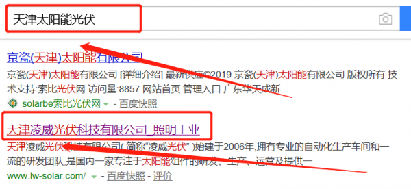 我們公司與天津凌威光伏科技有限公司合作中,對這個公司所經營的太陽能光伏這個行業提供了快速排名,同時讓我們積累到更多的經驗,與天津凌威光伏科技有限公司這個公司建立了友好的合作伙伴的關系,也提高了海洋網絡在同行業的知名度,提高了太陽能光伏在同行業的知名度,發展越來越好。
