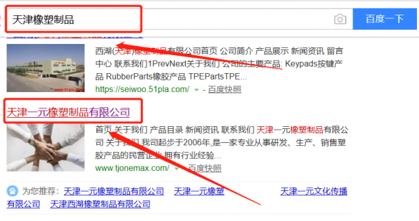 天津一元橡塑制品有限公司跟本公司簽訂快速排名合同
