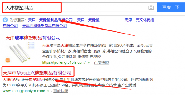 我們公司與天津市華元正興橡塑制品有限公司合作中,對這個公司所經營的橡塑制品這個行業提供了百度快照排名,與該公司的合作,更多的客戶讓我們公司為其提供百度快照排名,通過每一次合作,我們公司不斷完善自己,同時希望合作伙伴在經營的路上越來越好。