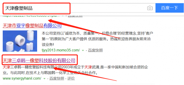 天津三卓韓一橡塑科技股份有限公司跟本公司簽訂快速排名合同