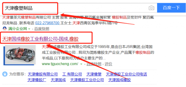 天津國成橡膠工業有限公司跟本公司簽訂快速排名合同