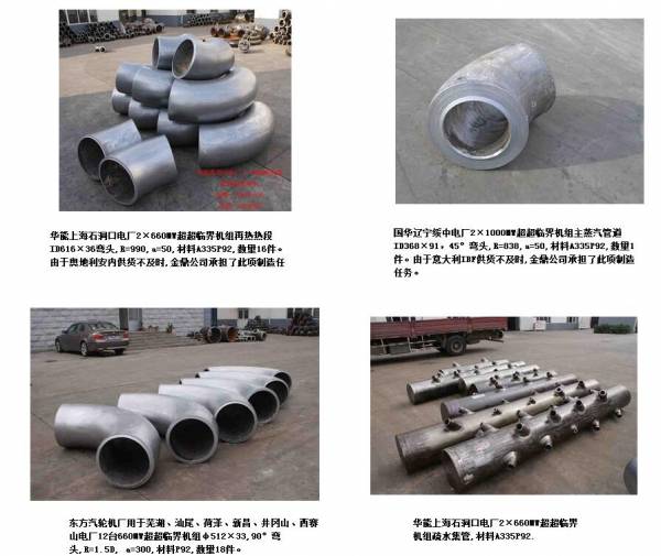 本公司多年來與國內行業權威機構合作,共同研究開發了電站管制大口徑厚壁三通和中頻熱推彎頭;獨創了隧道式熱推彎頭;A335P91和15NiCuMoNb5-6-4材料管件;鋼X70級熱壓三通; 1000MW超超機組A335P92材料管件;取得了ISO質量、環境認證;OHSAS職業健康安全認證;取得了國家質量監督檢驗檢疫總局頒發的“特種設備壓力管道元件制造許可證”; 北京電能產品認證中心PCCC全套超超臨界機組產品認證;及多次ASME“PP”認證;承攬了中核秦山二期、中廣核多數核電工程非核級管件;近20臺超超臨界機組全部成套管件;近10臺雙再熱超超臨界機組管件;等等高精尖機組的制造任務。二十幾年來科研開發與電力機組升級并行,科技成果始終走在同行業前列,各類新產品十余次填補國內空白或超過國際先進水平, 十幾次榮獲國家重點新產品獎、中國電力科學技術二等獎、天津市科技進步獎。