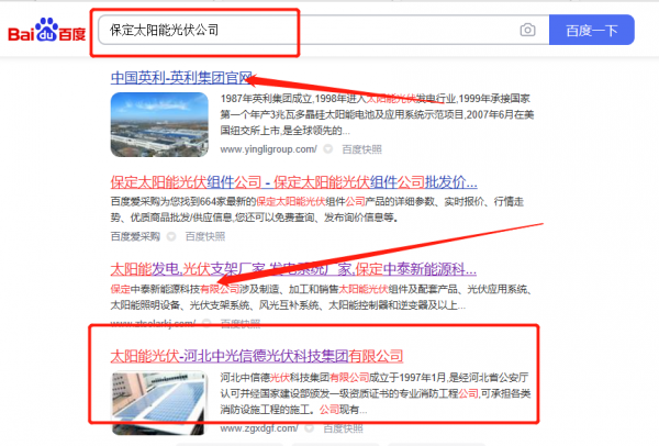 河北中光*德光伏科技集團有限公司選用我司企業太陽能光伏的網站優化產品,其SEO關鍵詞有太陽能光伏。按天計費,最快7天上詞,不到首頁不扣費。關鍵詞質量保證,白帽SEO符合百度算法,360、搜狗、移動端等排名效果免費贈送。河北中光*德光伏科技集團有限公司成立于2009年,是經保定市市場監督管理局審核的有資質的公司,其統一社會信用代碼:91130605**3135295Y。公司地址:河北省保定市朝陽北大街1358號尚北嵐庭C-1302號。