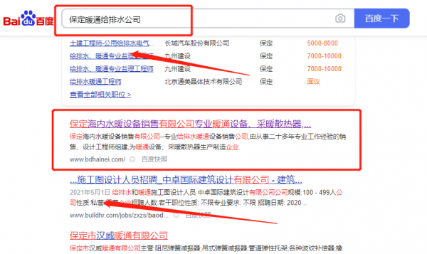 保定海*水暖設備銷售有限公司網站排名專注一站式品牌營銷整合推廣