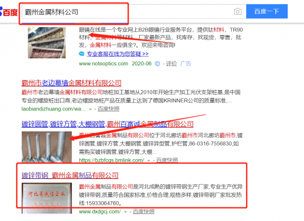 霸州市*屬制品有限公司選用我司企業金屬材料的網站優化產品,其SEO關鍵詞有金屬材料。專注于網站建設與排名優化,只做優化型網站,正規網站推廣優化,排名上升速度快,排名穩定,效果達標率超95%,換位思考,提升用戶體驗的同時為企業帶來效益。霸州市*屬制品有限公司成立于2003年,是經霸州市市場監督管理局審核的有資質的公司,其統一社會信用代碼:91131081**1339798H。公司地址:河北省霸州市信安鎮南霸楊公路北。