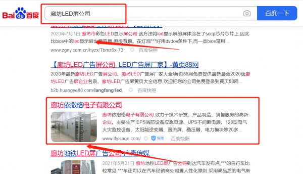 我們公司與廊坊依*格電子有限公司合作中,對這個(gè)公司所經(jīng)營的LED屏這個(gè)行業(yè)提供了關(guān)鍵詞排名,與該公司的合作,更多的客戶讓我們公司為其提供搜索引擎優(yōu)化推廣,通過每一次合作,我們公司不斷完善自己,同時(shí)希望合作伙伴在經(jīng)營的路上越來越好。