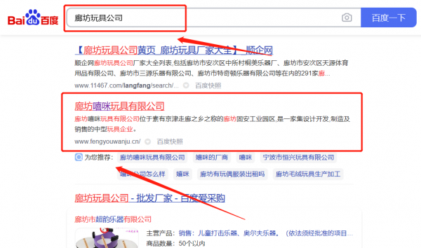 廊坊嘻*玩具有限公司百度關鍵詞排名營銷優化公司