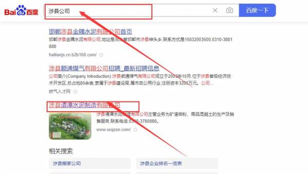 涉縣清*水泥制造有限公司百度關鍵詞排名效果展示
